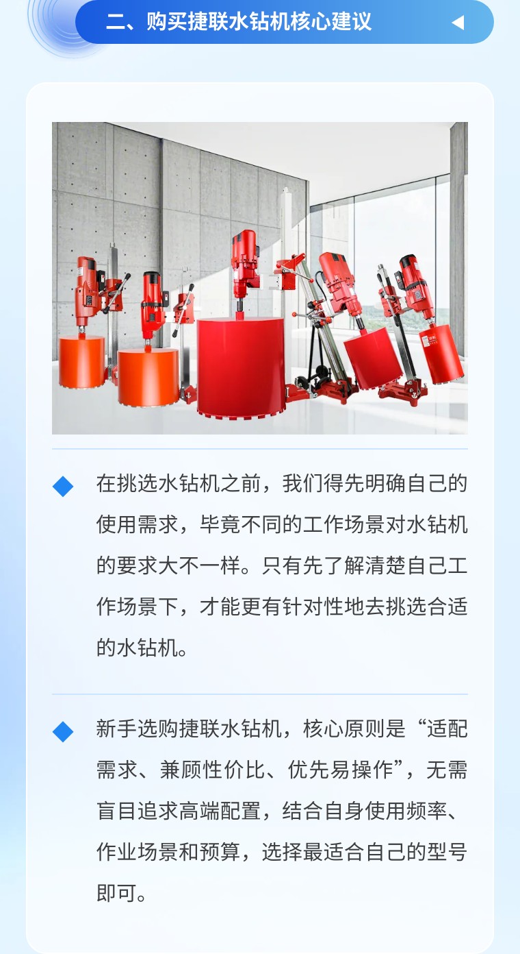 捷联水钻机作为混凝土、红砖、石材等硬质材料钻孔的核心工具,